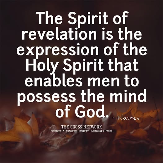 The Spirit of revelations is the expression of this same Holy Spirit that enables men to possess the mind of God. This expression helps men to have a grasp of the consciousness of God towards a matter. Who is he that knoweth the mind of a man? Except his spirit? (see 1 Corinthians 2v11)